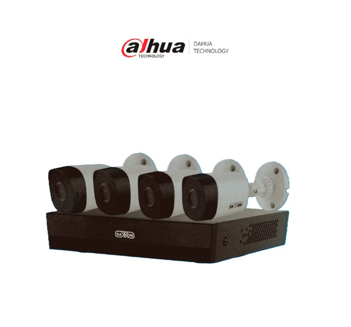 Kit Saxxon SUA-KIT/XVR1E04-I/4-B10P-0280B - Kit 4 Canales HDCVI / 4 Camaras B10P de 1MP 720 lente 2.8mm Apertura Hasta 100°/ Grabador de 4 Canales